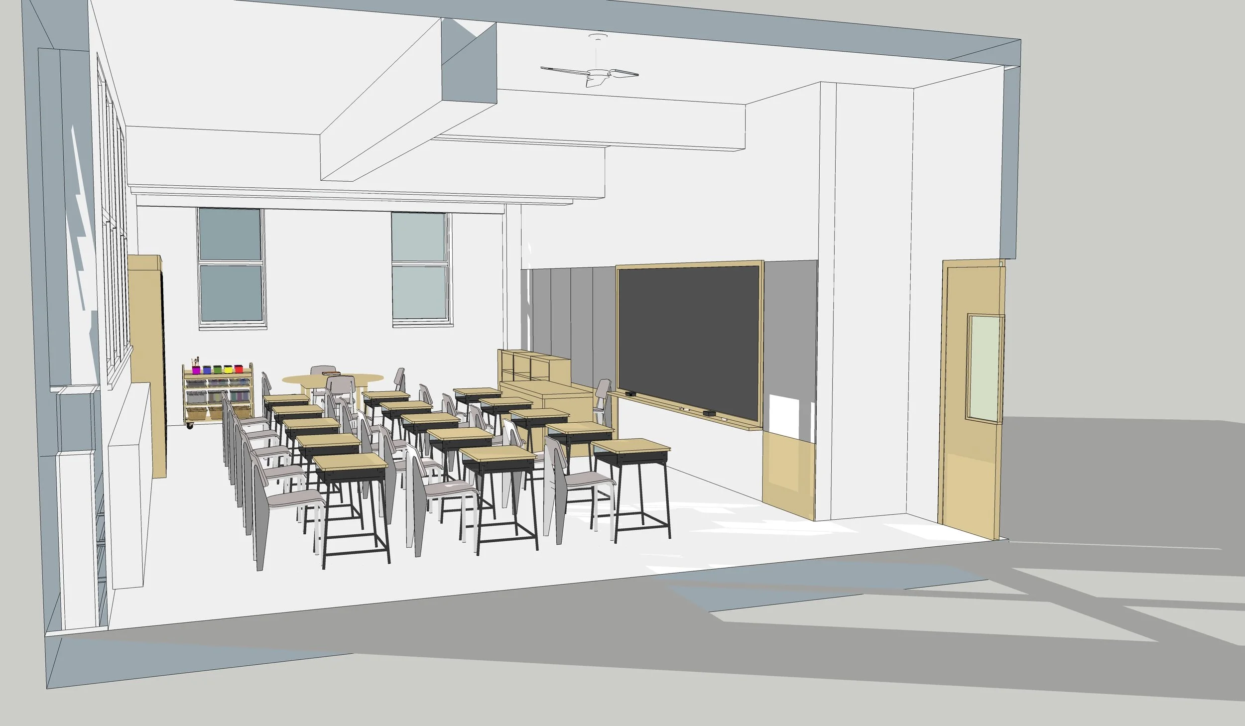 We have conducted research into programmatic requirements that emerge around new institutional responsibilities, the integration of artistic elements into schools’ programs, and the innovative uses of materials and under-utilized spaces. For example, we have been asked to create a guide for space requirements for afterschool programs, have conducted investigations of how particular artistic works or design elements could support schools’ particular educational philosophy, explored how traditional materials (like chain link fencing) can be creatively used in design, and investigated how science lab space can be created even when schools have no available classrooms.